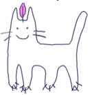 Белая кошка с красивыми сиреневыми глазами.подушечки лап и внутренняя часть ушей тоже сиреневые.Одно пёрышко на голове,всё сиреневое,строит а голове торчком.Очень романтична.любит ночью в полнолуние посмотреть на луну с высокого холма.Хвост пушистый. |
