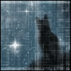 Серебряная кошка с голубыми глазами и с красным амулетом на шее. |